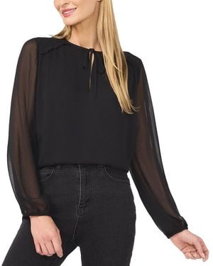 Mixed Media 3/4-sleeve Crew Neck Knit Blouse - Black