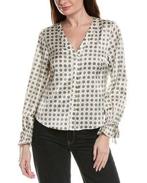 Contrast Embroidered Cotton Collared Shirt Embroidered Scalloped Hem Cotton Shorts - Blue
