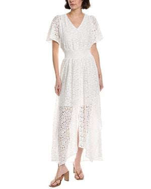 Smocked Waist Flutter Sleeve Maxi Dress - White