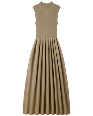 Rivulet Ribbed Pleated Midi Dress - Natural