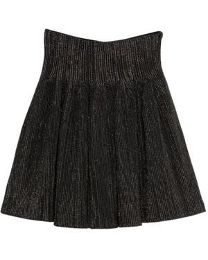 Pleated Metallic-Thread Skirt - Black
