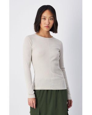 White Cotton Long Sleeve T - Gray