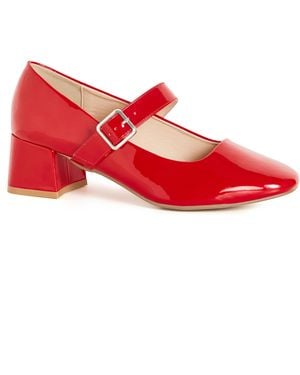 Plus Size Wide Fit Mary Jane Block Heel Shoes - Red