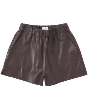 Elasticated-Waist Leather Shorts - Brown