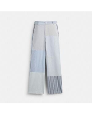 Patchwork Striped Pants - Blue