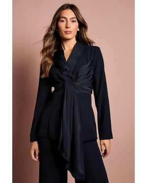 Plus Size Waterfall Drape Wrap Blazer - Blue