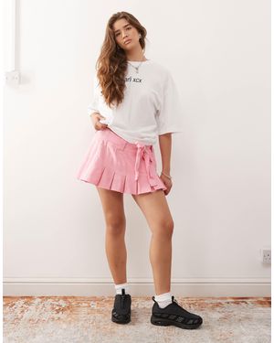 Tailored Fold Over Waistband Mini Pleated Skirt - Pink