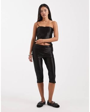 Stretch Satin Low Rise Capri Pants - Black