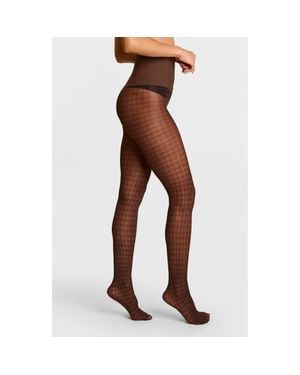Plaid Sheer Tights - Brown