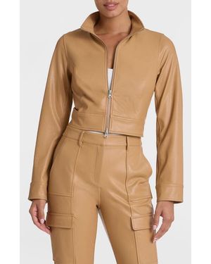 Faux Leather Crop Biker Jacket - Natural