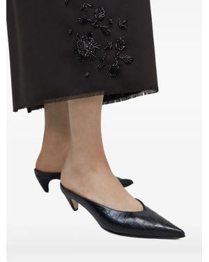 60Mm Leather Heeled Mules - Black