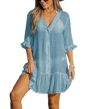 Aubree Ruffled Swim Cover-up Dress - Blue