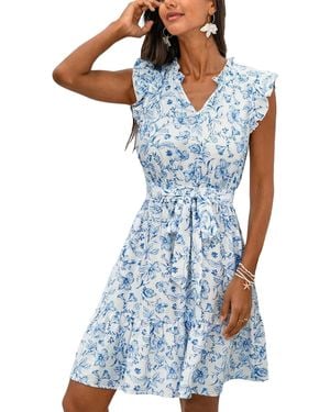 Porcelain Meadow Floral Mini Beach Dress - Blue