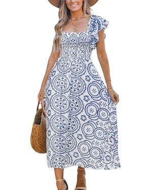 Blue Ornate Square Neck Midi Beach Dress - Blue