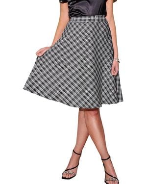 Plaid A-line Midi Skirt - Gray