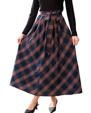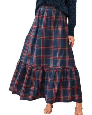 Plaid Asymmetrical Hem Midi Skirt - Brown
