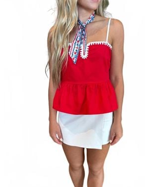 Contrast Stitching Detail Peplum Top - Red