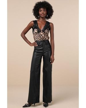Far Out Vegan Vegan Leather High-Rise Wide-Leg Pants - Black