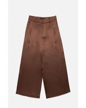 Otto Satin Wide Leg Pants - Brown