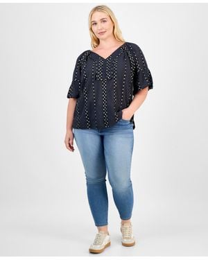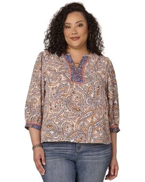 Plus Size Notch-neck Top - Multicolor