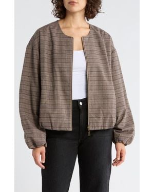 Plaid Zip Front Bomber Jacket - Brown