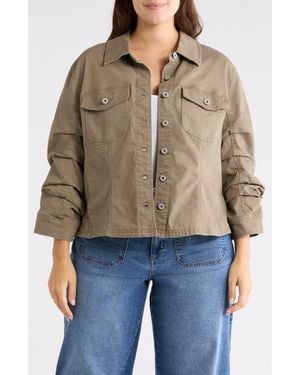 Ruched Sleeve Cotton Shirt Jacket - Black