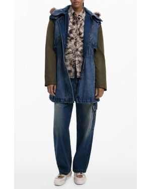 Denim Parka With Removable Hood & Sleeves - Blue