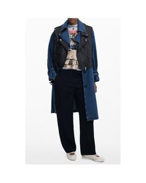 Denim Trench With Removable Faux Leather Moto Vest - Blue
