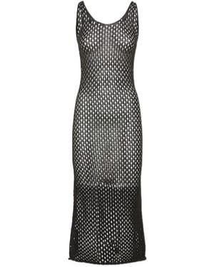 Mesh Knitted Long Sleeveless Dress - Gray