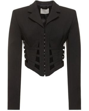 Wool Blend Corset Cut Out Blazer - Black