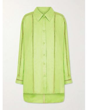 Bridgetown Embroidered Silk-Satin Shirt - Green