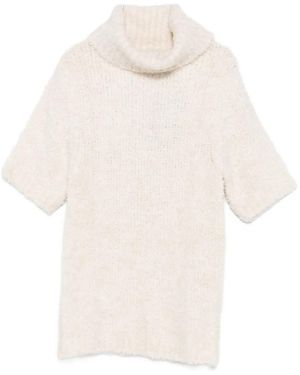 Roll-Neck Short-Sleeve Knitted Top - White