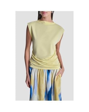 Boxy Short Sleeve Linen Blend Top - Yellow