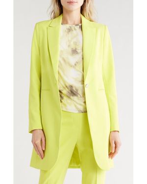 Long Sleeve Blazer Belted Front Seam Twill Pants Sleeveless Zipper Corset Top - Natural