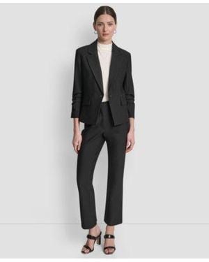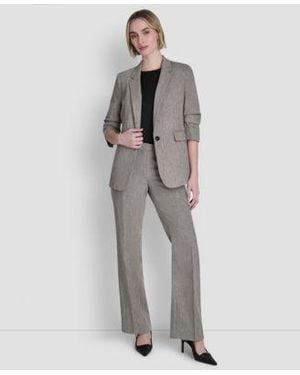 Petite Notch Collar One Button Jacket Crosshatch Modern Fit Pants - Gray