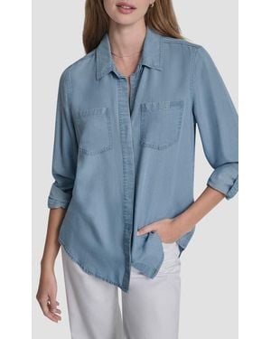 Chambray Button Front Top - Blue