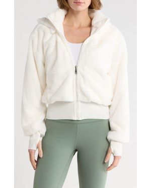 Faux Fur Zip Jacket With Removable Hood - White