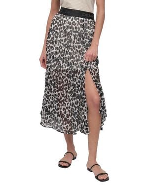 Metallic Oil Spill Pleated Midi Skirt - Black