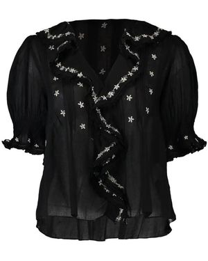 Hettie Floral-Embroidered Ruffled Blouse - Black