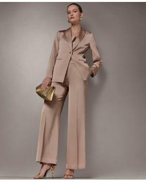 One Button Blazer Wide Leg Pants - Brown
