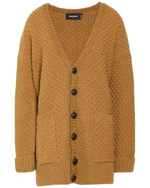 Explore the tactile versatility of DSquared² knits with a selection of cardigans that marry Italian craftsmanship with spirited sophistication. From the pure comfort of virgin wool and cashmere blends to the innovative textures of mohair and alpaca, these pieces offer luxurious warmth in a spectrum of colors. Each DSquared² cardigan boasts meticulous attention to detail, be it a playful beaded-heart accent or the distinctive distressed finish of a logo-printed sweater. Perfect for layering or a standalone statement, these cardigans exude confidence whether opting for the boldness of the pink and yellow hues or the understated elegance of natural and black shades. Completing any look with an oversized or fitted silhouette, DSquared² presents knitwear that seamlessly integrates into a refined wardrobe.