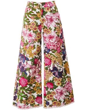 Floral Symphony Wide Leg Jeans - White