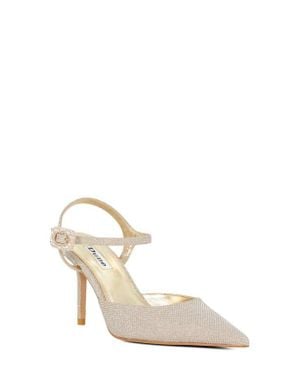 Channel Ankle Strap Pointed Toe Pump - White