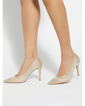Wide Fit Brightest Embellished Hotfix Court Heels - White