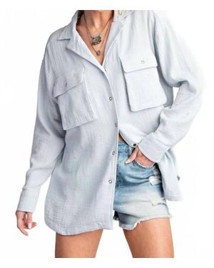 Cotton Snap Cargo Shirt (Plus Size) - Blue