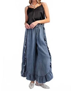 Plus Size Ruffle Chambray Pants - Blue