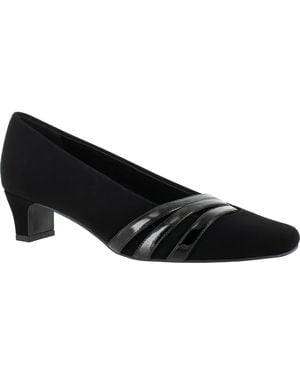 Entice Pumps Leather Square Toe Slip On Lion635 - Black