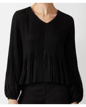 V-Neck Long Sleeve Ruched Chiffon Top - Black