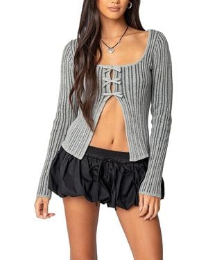 Bowtie Split Front Knit Top - Gray