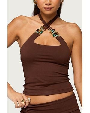 Alizie Beaded Chain Keyhole Halter Top - Black